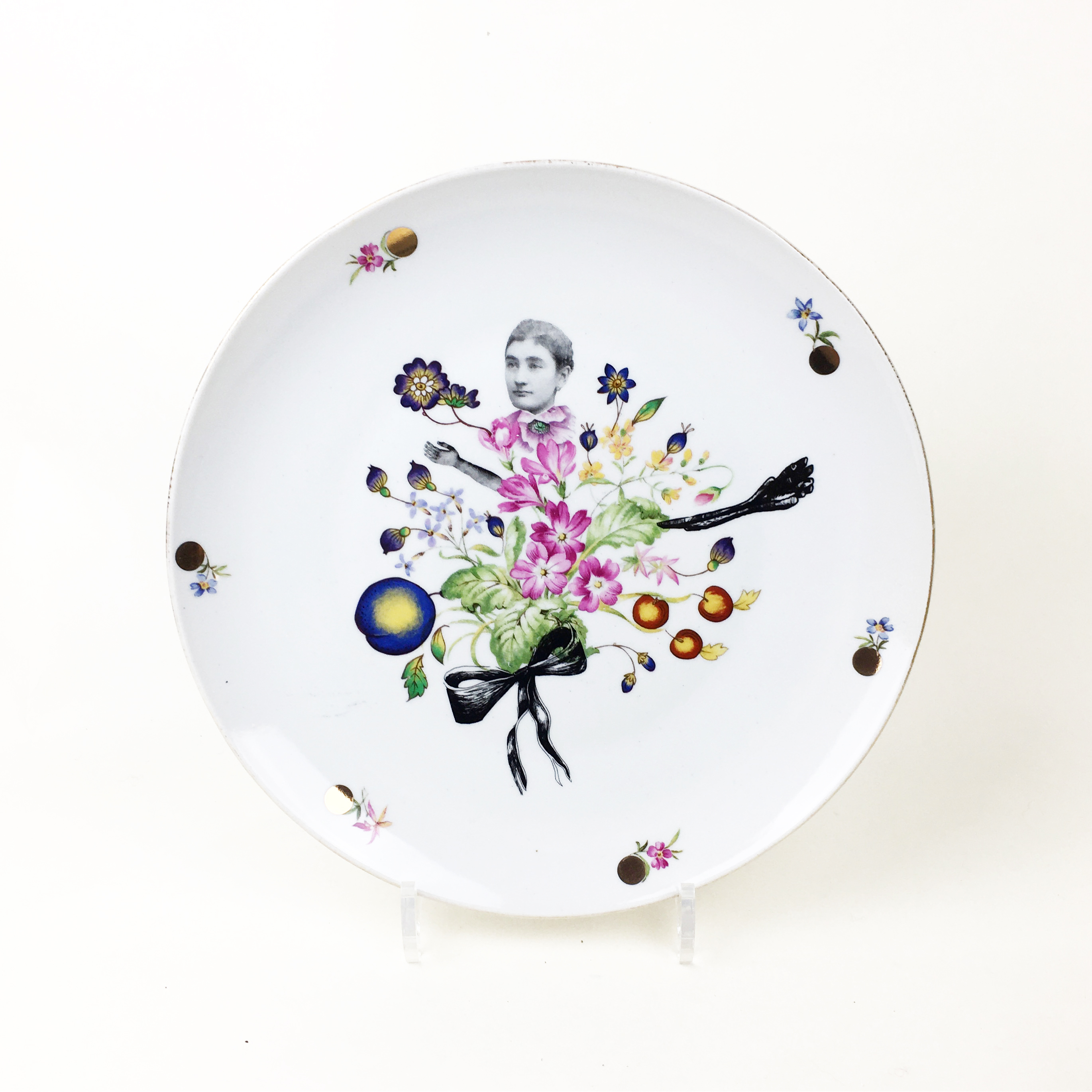 Servin plate or platter. Collaged and illustrated.