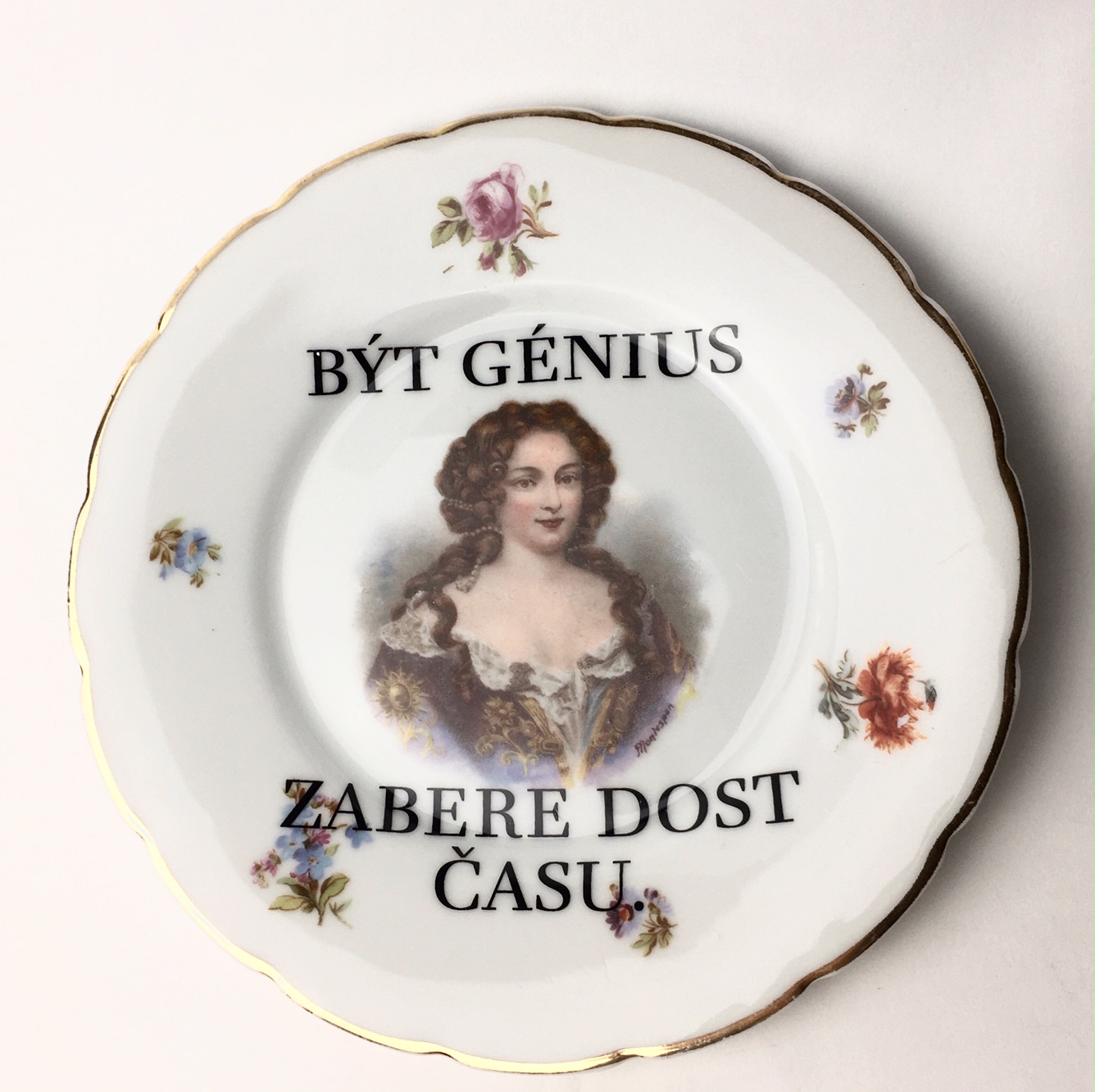 Vybrané talířky a talíře doplněné o typo nápisy, moudra a citáty.