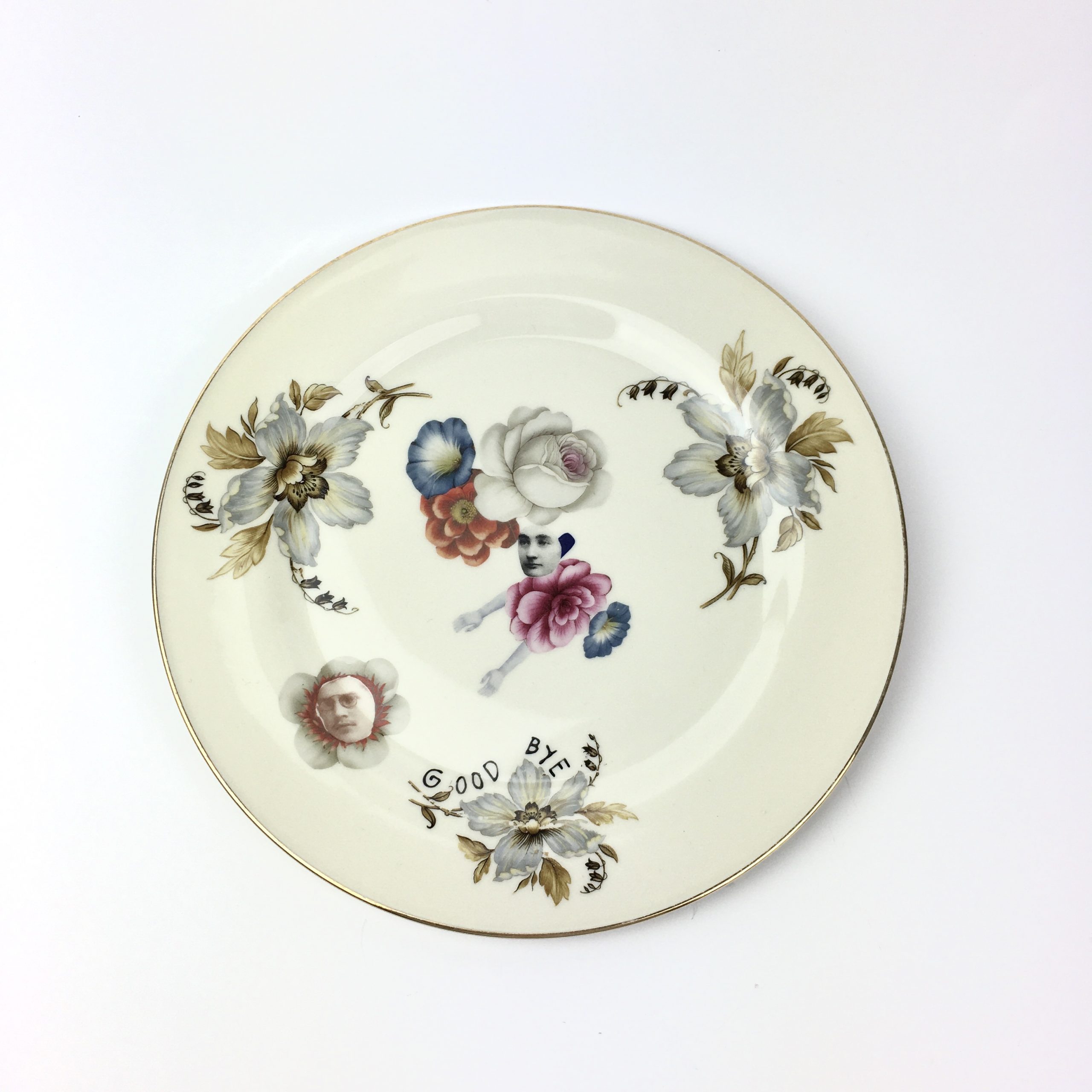Serving or dining plate. Collaged and illustrated.