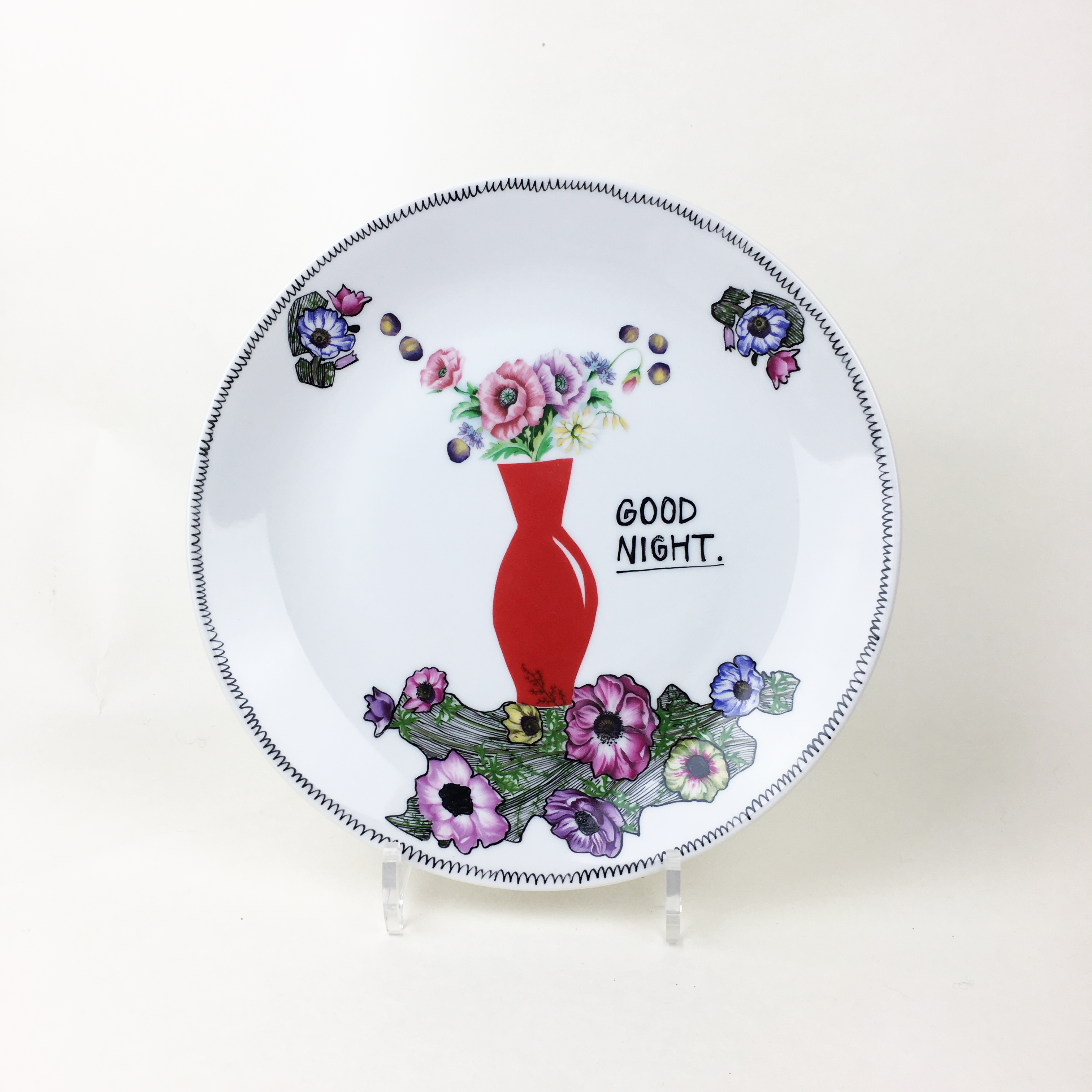 Servin plate or platter. Collaged and illustrated.