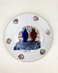 Regular plate. Collaged and illustrated.