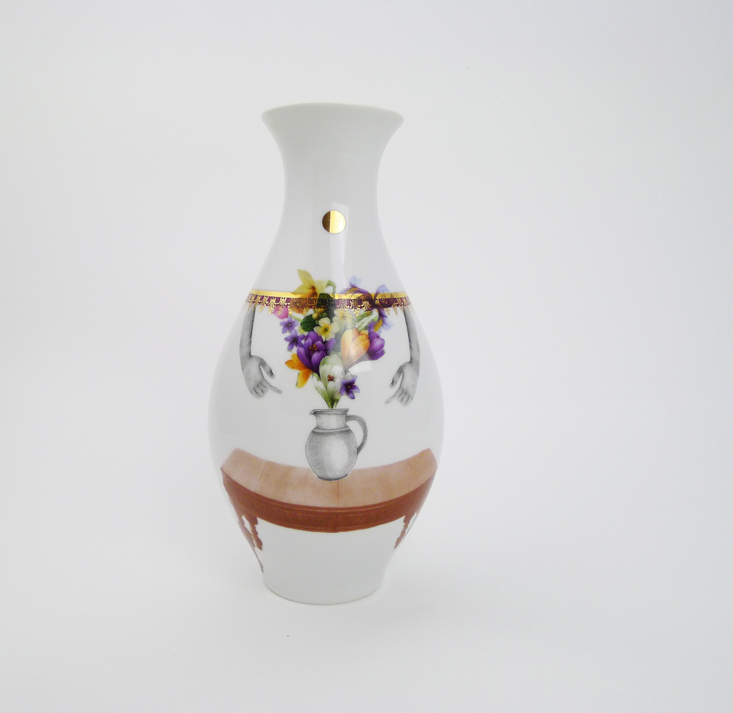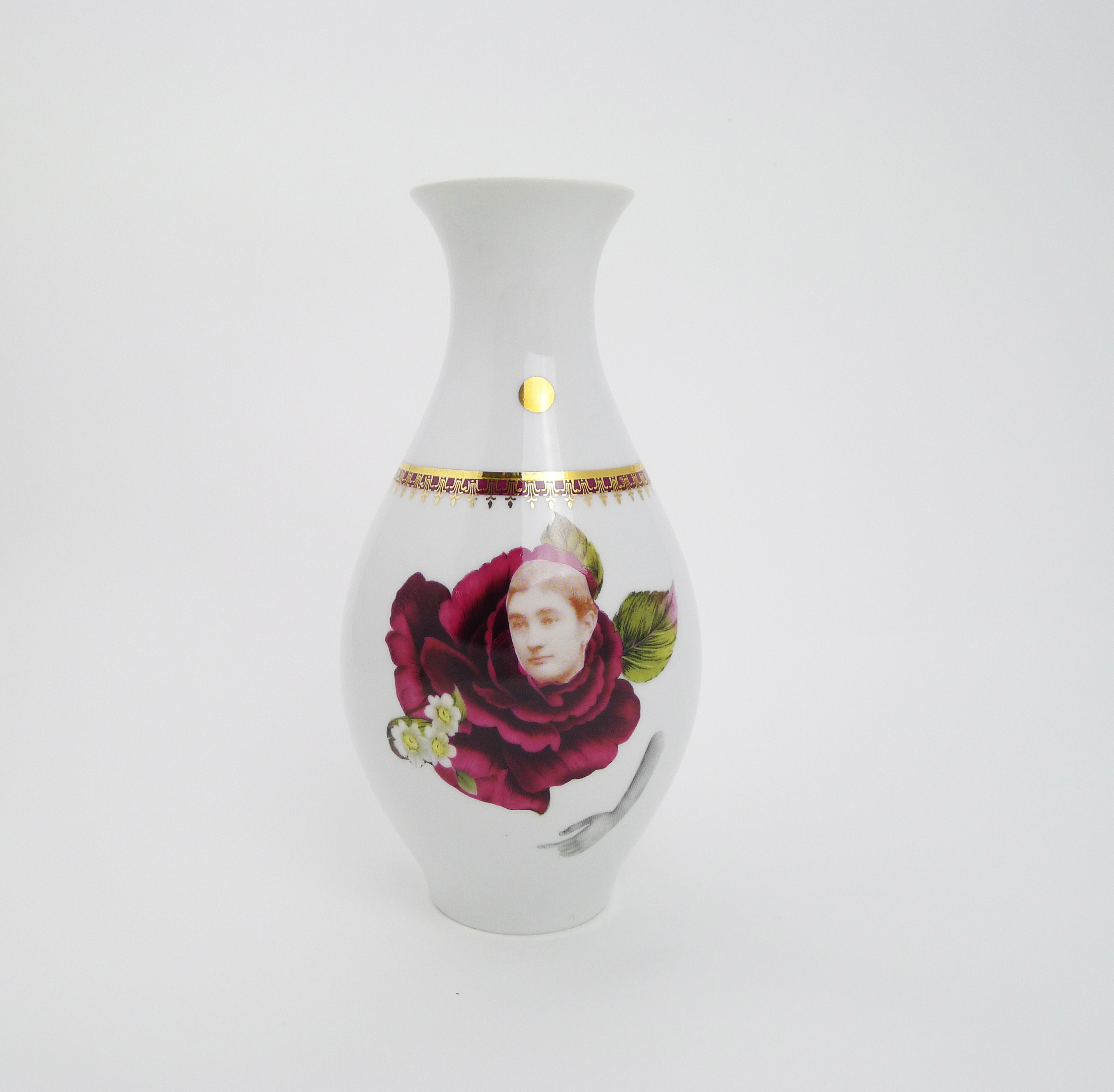Vase, floral decor, collaged and two side illustrated.