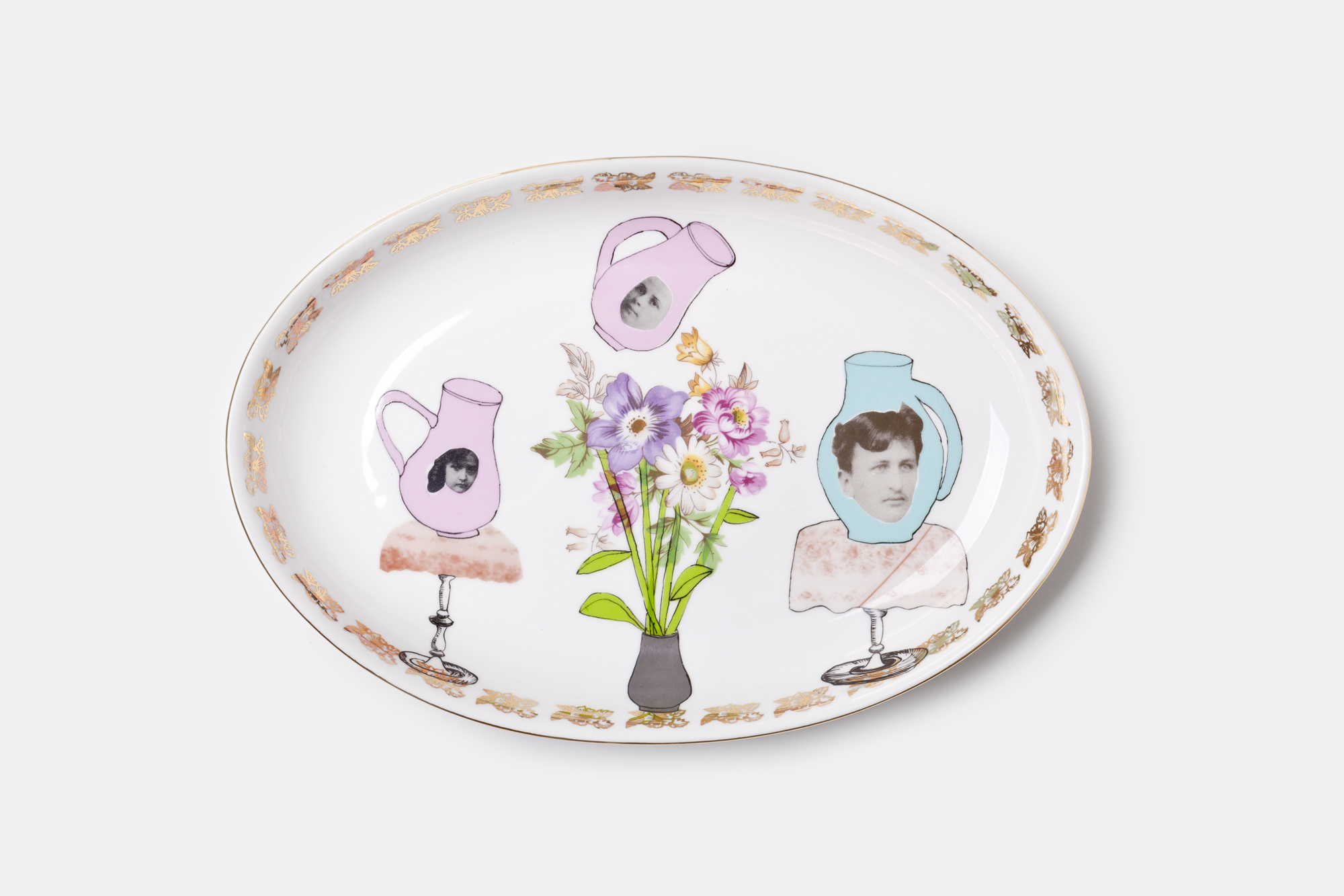Old porcelain, with gold decor, illustrated.